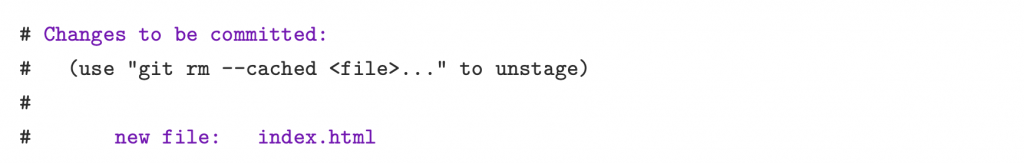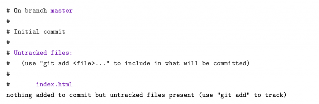 So, we need to explicitly tell Git to add index.html to the repository. The aptly named git add command tells Git to start tracking index.html: