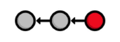 Our history can now be represented as the following. Note that the red circle, which represents the current commit, automatically moves forward every time we commit a new snapshot.