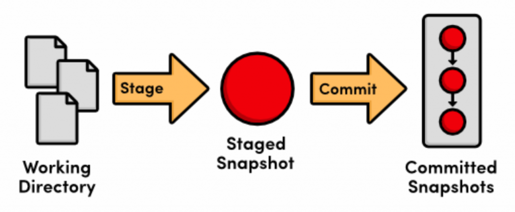 Git’s term for creating a snapshot is called staging because we can add or remove multiple files before actually committing it to the project history. Staging gives us the opportunity to group related changes into distinct snapshots—a practice that makes it possible to track the meaningful progression of a software project (instead of just arbitrary lines of code).