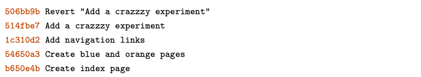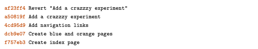 Check out the crazy experiment from the last module, remembering to change 514fbe7 to the ID of your fourth commit.