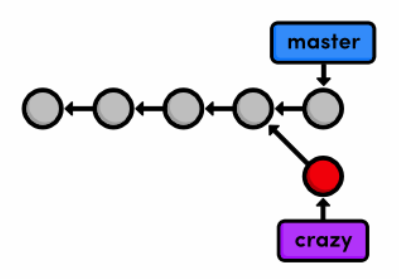 We’re now free to experiment in the working directory without disturbing anything in the master branch. The crazy branch is a completely isolated development environment that can be visualized as the following.