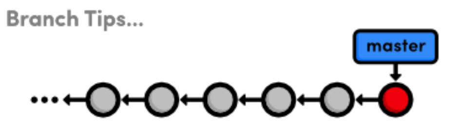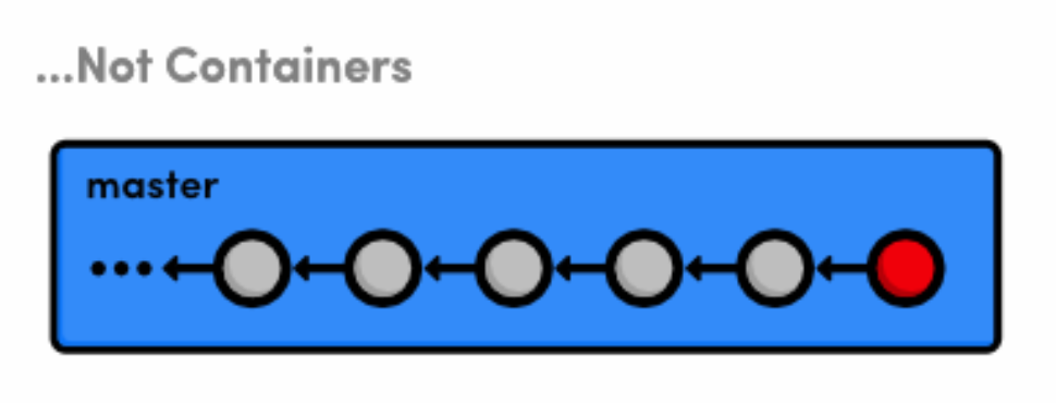 We did a lot of work with branch tips in this module. It’s important to realize that Git uses the tip of a branch to represent the entire branch. That is to say, a branch is actually a pointer to a single commit—not a container for a series of commits. This idea has been implicitly reflected in our diagrams: